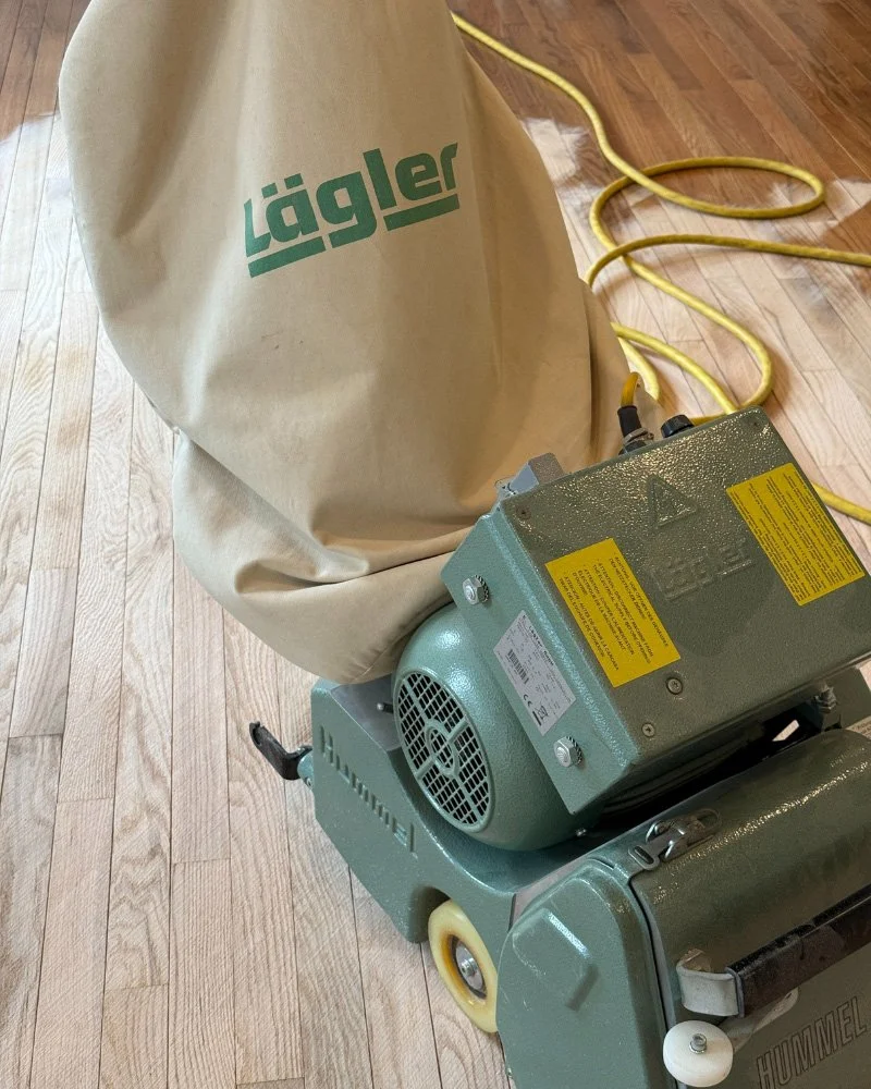 Our Reimagine package is a full-scale refinishing service that takes your hardwood down to a clean slate. We sand each board to remove deep scratches, discoloration, and old coatings, then custom stain and seal your floors to achieve your desired look — from classic to contemporary. This process delivers a brand-new finish built to last for decades.